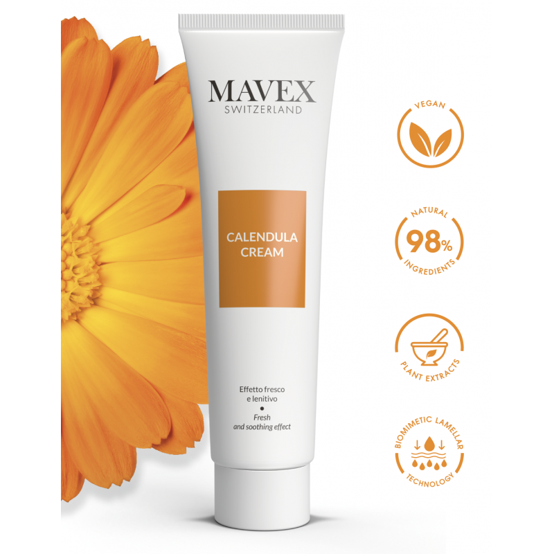 Η κρέμα καλέντουλας είναι ένα καλλυντικό προϊόν που αποτελείται από 98% φυσικά συστατικά και δεν περιέχει τεχνητά αρώματα. Το ευχάριστο άρωμά του προέρχεται αποκλειστικά από φυτικά εκχυλίσματα και αιθέρια έλαια. Απορροφάται γρήγορα, δεν αφήνει υπολείμματα και ενυδατώνει βέλτιστα την επιδερμίδα. Για να αυξήσει τη φυτοθεραπευτική αποτελεσματικότητα, η κρέμα καλέντουλας χρησιμοποιεί ένα βιομιμητικό φυλλωτό γαλάκτωμα που περιλαμβάνει τόσο το υδατοδιαλυτό εκχύλισμα όσο και το ελαιώδες εκχύλισμα καλέντουλας και χαμομηλιού. Αυτή η φαρμακευτική τεχνολογία, που χρησιμοποιείται για την απελευθέρωση θεραπευτικών ουσιών, επιτρέπει στα ενεργά συστατικά που περιέχονται στα φυτικά εκχυλίσματα να χορηγούνται σταδιακά και συνεχώς, αυξάνοντας έτσι τη λειτουργική τους αποτελεσματικότητα.